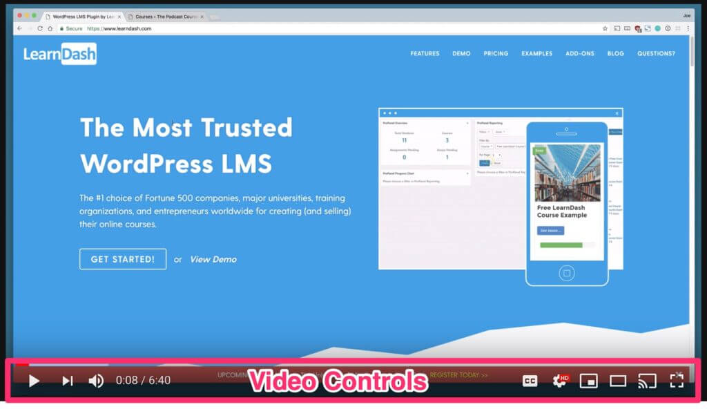 L’attivazione di “Visualizzazione dei controlli video” mostrerà tutti questi controlli all’utente e gli consentirà di avere un maggiore controllo sul video.