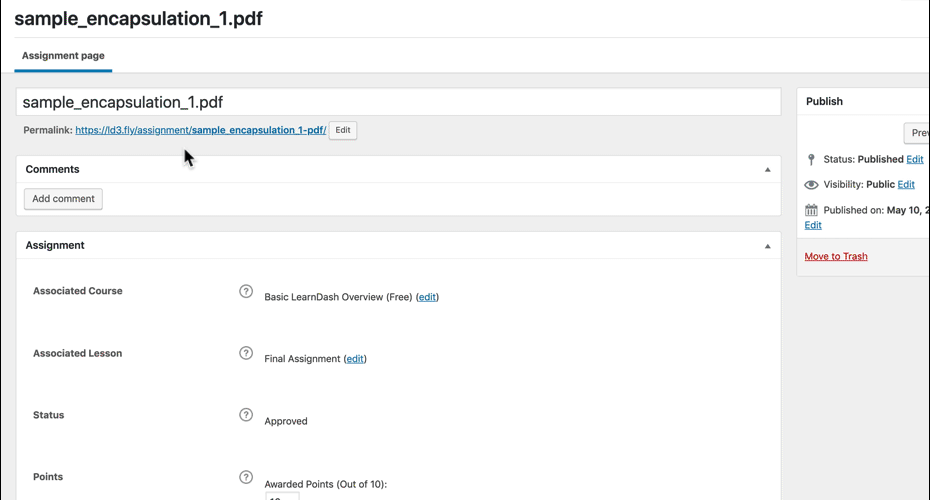 Il compito scomparirà immediatamente dalla pagina della lezione / argomento e l’utente non sarà più in grado di vederlo.