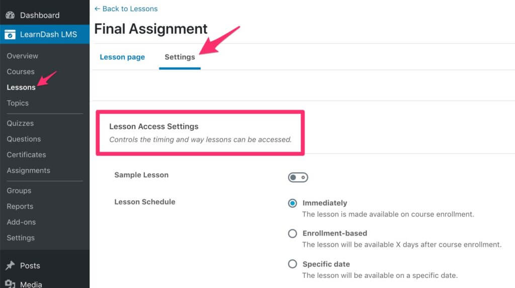 - Accanto al a Sample Lesson, attiva l’impostazione