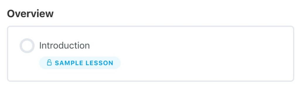 Puoi trasformare qualsiasi lezione in una lezione di esempio, che la renderà disponibile a tutti gli utenti, indipendentemente dal fatto che siano iscritti o meno al corso. Questo è un ottimo modo per mostrare il tuo stile di insegnamento o invogliare qualcuno a iscriversi o ad acquistare il tuo corso.
