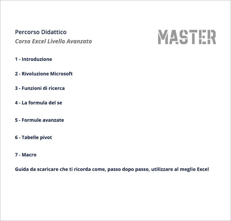 Quando abbiamo pensato di offrire ai nostri clienti il Corso Excel livello avanzato, lo abbiamo fatto tenendo conto delle principali caratteristiche e dei problemi comuni a tantissimi giovani e adulti che hanno necessità di digitalizzare le proprie competenze e il proprio lavoro ma anche a chi lo sta cercando e ha bisogno di dimostrare di essere al passo con i tempi. Il corso mira a risolvere problemi reali e a ottenere risultati concreti, offrendo lezioni pratiche, semplici e utili ad ottimizzare e completare competenze informatiche già in tuo possesso.